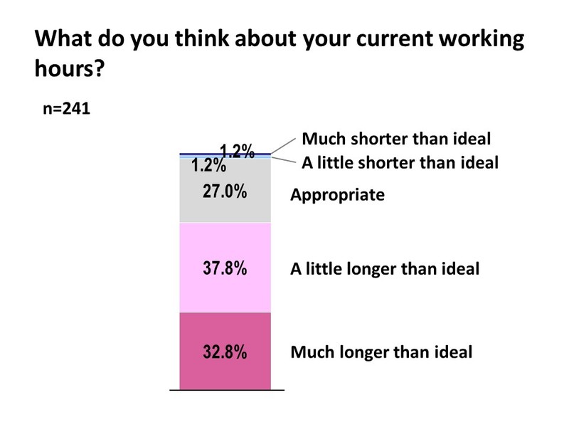 Though doctors have a divided opinion on the ideal working hours for a medical professional, the doctor community largely believes that the current working hours are appropriate. Close to 40% of the responding doctors believe that their working hours are only a little above the ideal number of working hours for medical professionals. Close to 30 % of respondents believe that their working hours are appropriate and have no complaints. From the total respondents, above 30% respondents feel that their working hours are much longer than the ideal number of working hours for medical professionals.