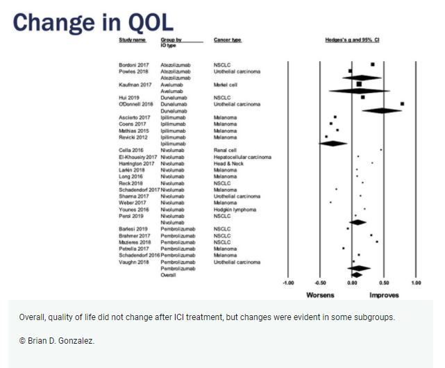 Quantitative summary of QoL data confirms immune checkpoint inhibitor therapy is generally well-tolerated